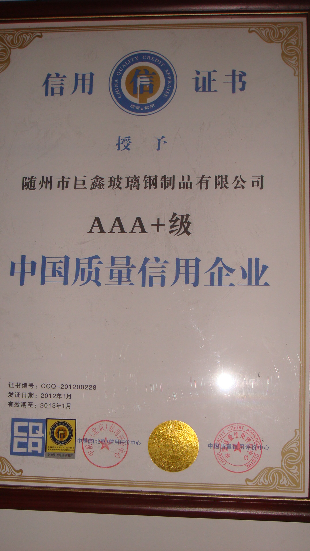 热烈庆祝巨鑫玻璃钢荣获国际世标认证